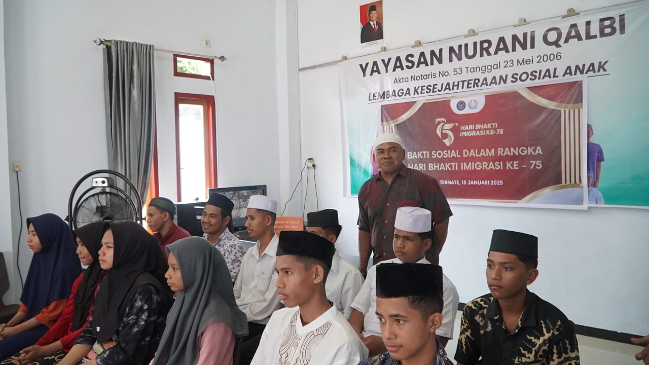 Ternate – Dalam rangka Hari Bhakti Imigrasi ke 75 tahun 2025, jajaran Kanwil Ditjen Imigrasi Malut menggelar bakti sosial kepada anak yatim dalam asuhan Yayasan Nurani Qalbi. Kakanwil Ditjen Imigrasi Malut, Ian F. Markos dalam sambutannya mengatakan bahwa kunjungan ini merupakan wujud nyata dari komitmen kita untuk saling peduli, berbagi, dan mendukung satu sama lain.