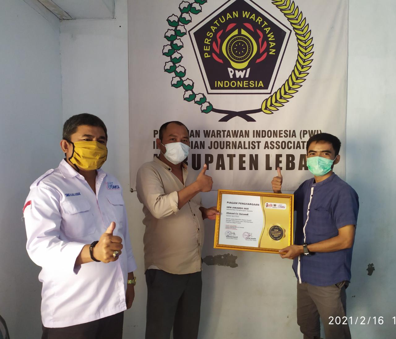 Dirinya mengapresiasi PWI dan SMSI Lebak yang telah memberikan perhatian kepada tokoh masyarakat dengan penghargaan HPN Award.