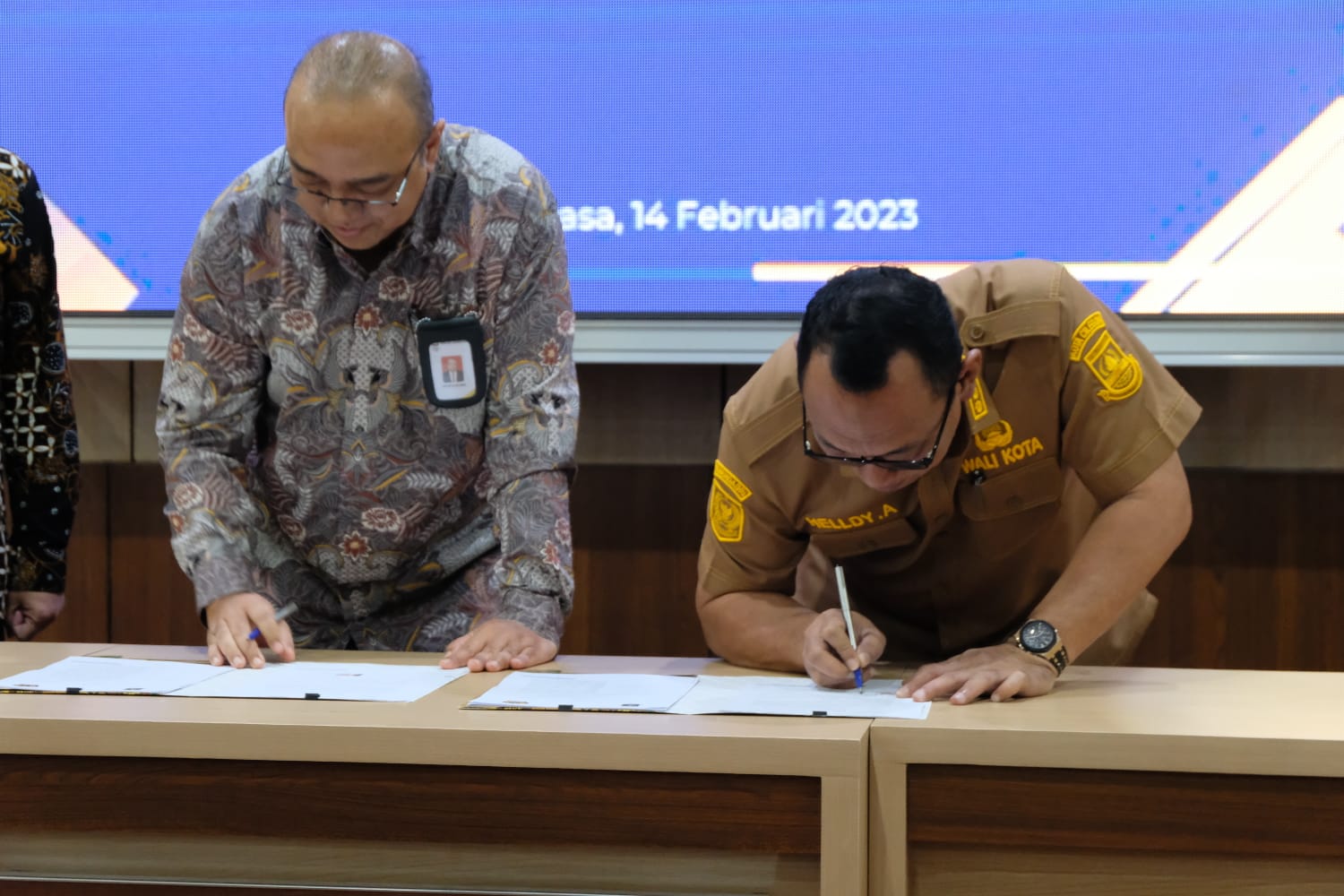 CILEGON – Kepala Kanwil DJP Banten Yoyok Satiotomo dan Walikota Cilegon Helldy Agustian menandatangani Perjanjian Kerjasama Penyelenggaraan Pelayanan Perpajakan di Mal Pelayanan Publik Kota Cilegon.