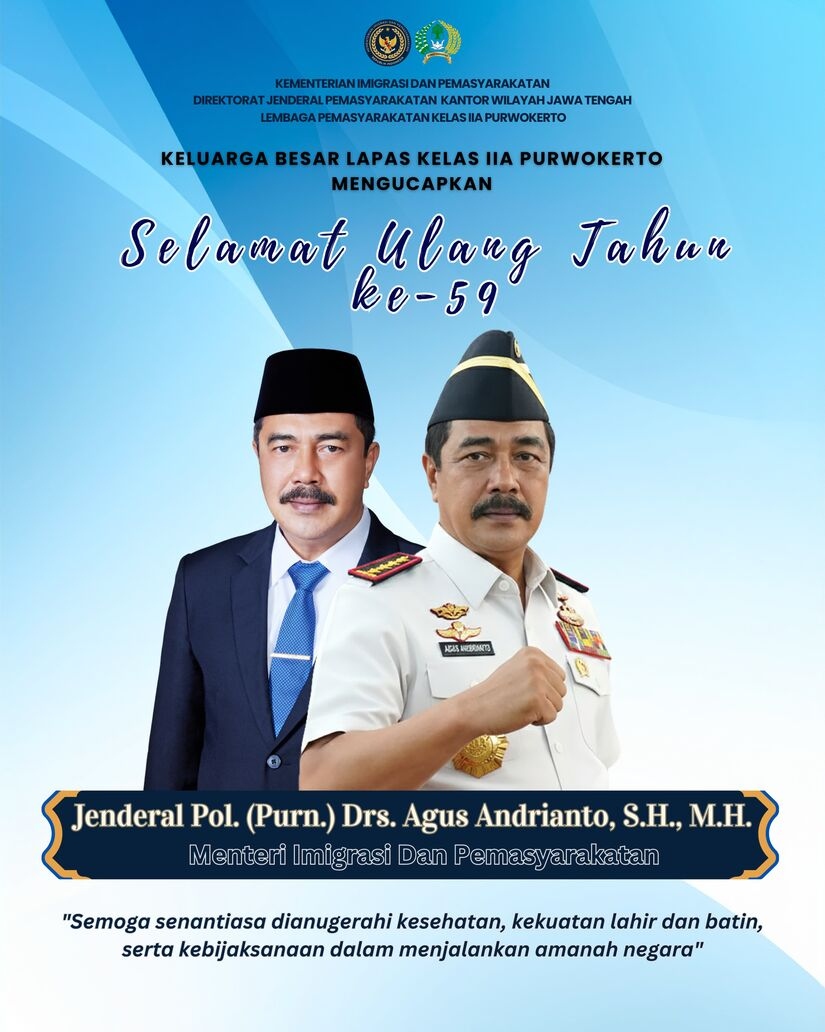 Keluarga Besar Lembaga Pemasyarakatan Kelas IIA Purwokerto dengan hormat mengucapkan: