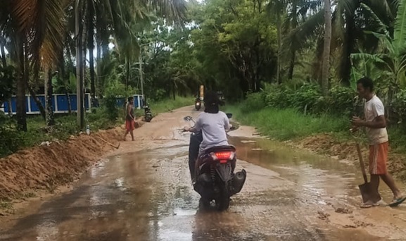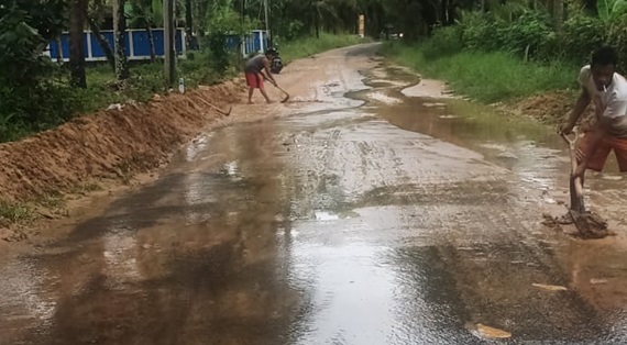 Saat ditemui di sela sela kegiatan Udin salah seorang warga Rabu ( 16/3/2022) mengatakan bahwa kegiatan ini murni inisiatif kami bersama teman teman karena merasa kasihan kepada para pengguna jalan yang kesusahan ketika melintasi jalan tersebut,tak jarang ada yang sampai terpeleset karena jalannya begitu licin, Katanya.