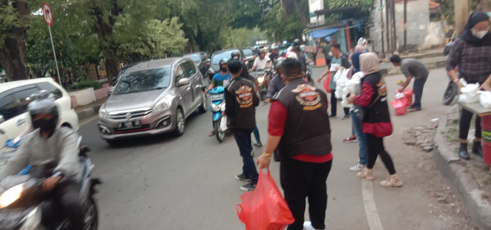 Setidaknya ada 1.000 takjil yang dibagikan ke berbagai lapisan masyarakat yang melintas di sekitar Alun-alun Kota Serang, Banten. Moge yang mereka geber dari rumah, mejeng rapih di lapangan parkir.