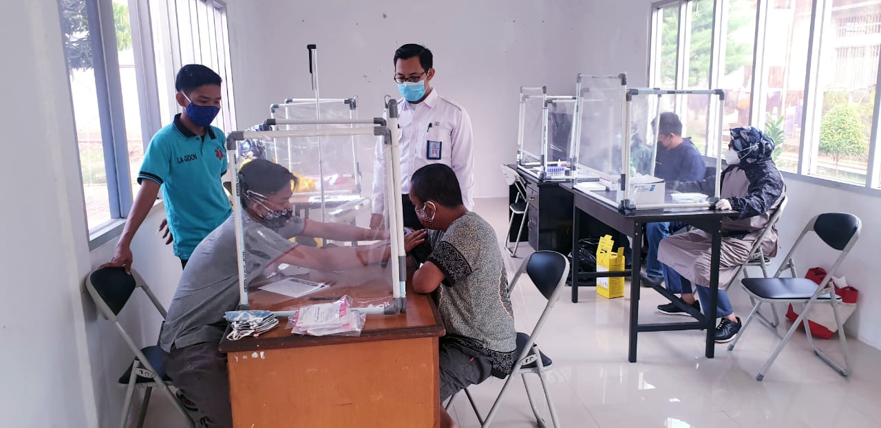 Lapas Kelas IIA Cilegon melaksanakan mobile VCT (screening HIV) dan screening bagi warga binaan beresiko infeksi paru yang dilaksanakan oleh tenaga kesehatan lapas cilegon serta kerja sama dengan Puskesmas Cibeber Kota Cilegon. Kamis (16/06/2021).