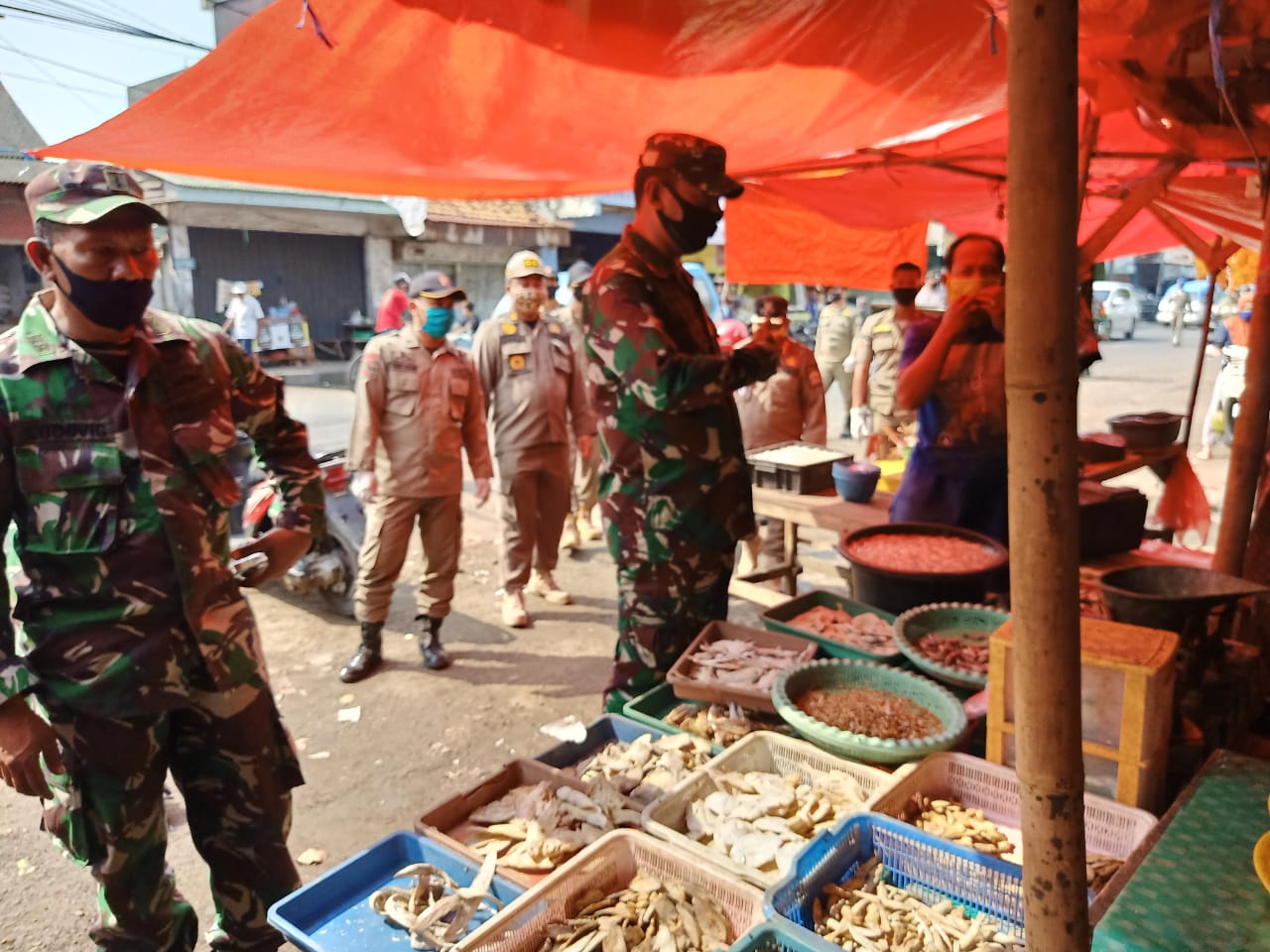 BANTEN, Koramil 0201/Serang Kodim 0602/Serang bersama Camat Serang dan Satuan Polisi Pamong Praja (Satpol PP) dan Polsek Serang, menggelar Karya Bhakti membersihkan Pasar Lama Kota Serang, Rabu (16/09/2020)