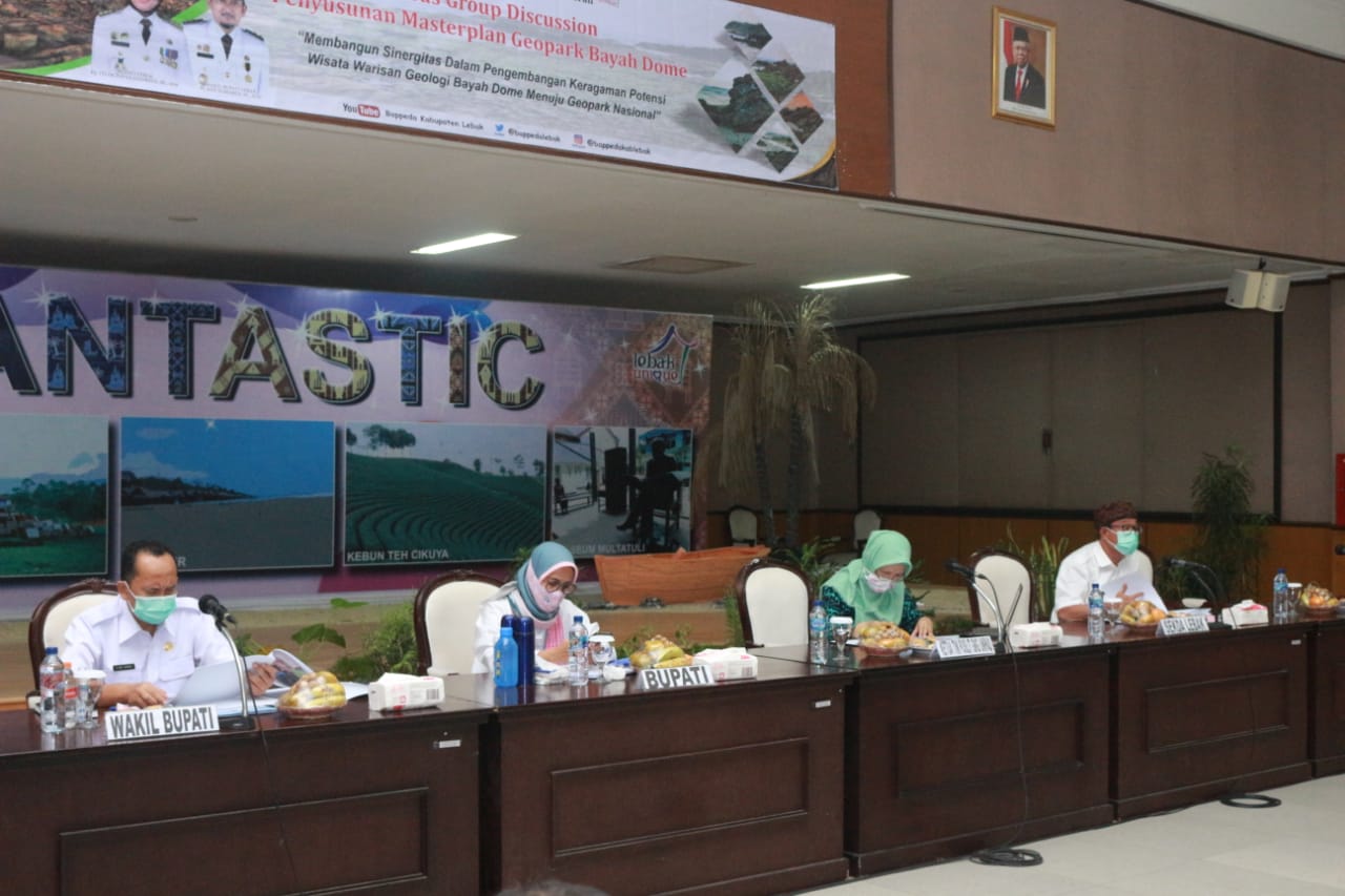Lebak, Siberindo.co – Pemerintah Daerah Kabupaten Lebak melakukan Focus Group Discussion (FGD) dalam rangka penyusunan Masterplan Geopark Bayah Dome. Kegiatan dihadiri langsung oleh Bupati Lebak Iti Octavia Jayabaya, Wakil Bupati Lebak Ade Sumardi, Plt. Ketua DPRD Kab. Lebak Ucuy Masyhuri, Sekretaris Daerah, Asisten Daerah, beberapa Organisasi Perangkat Daerah (OPD) Kab. Lebak, Camat, serta Lembaga-lembaga terkait secara daring. Bertempat di Aula Multatuli Setda Lebak, Rabu (16/09/2020).
