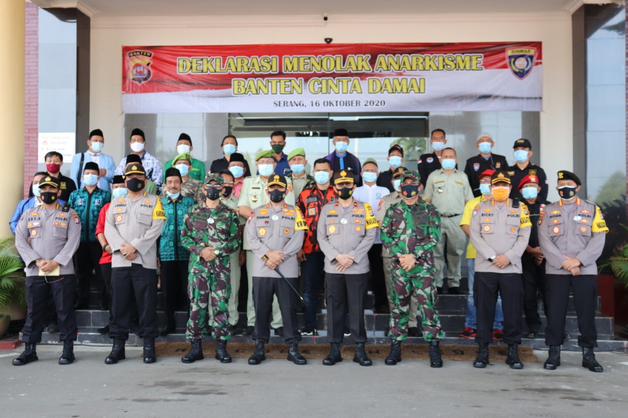 Kegiatan deklarasi Cinta Damai tersebut di pimpin oleh Kapolda Banten Irjen Pol Drs Fiandar di Mapolda Banten, Jumat (16/10/2020).