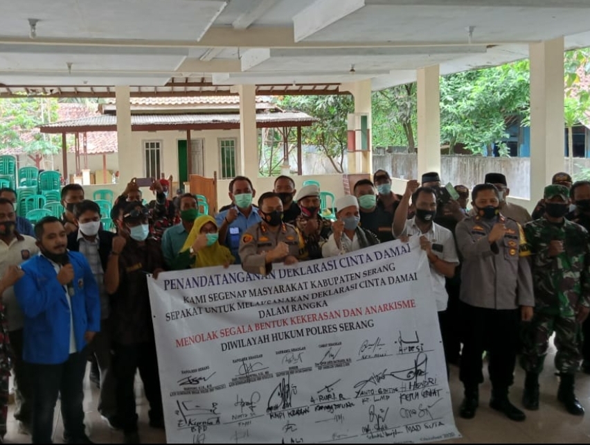 Deklarasi Cinta Damai tersebut, Polres Serang menggandeng Ulama, Organisasi Masyarakat dan Buruh.