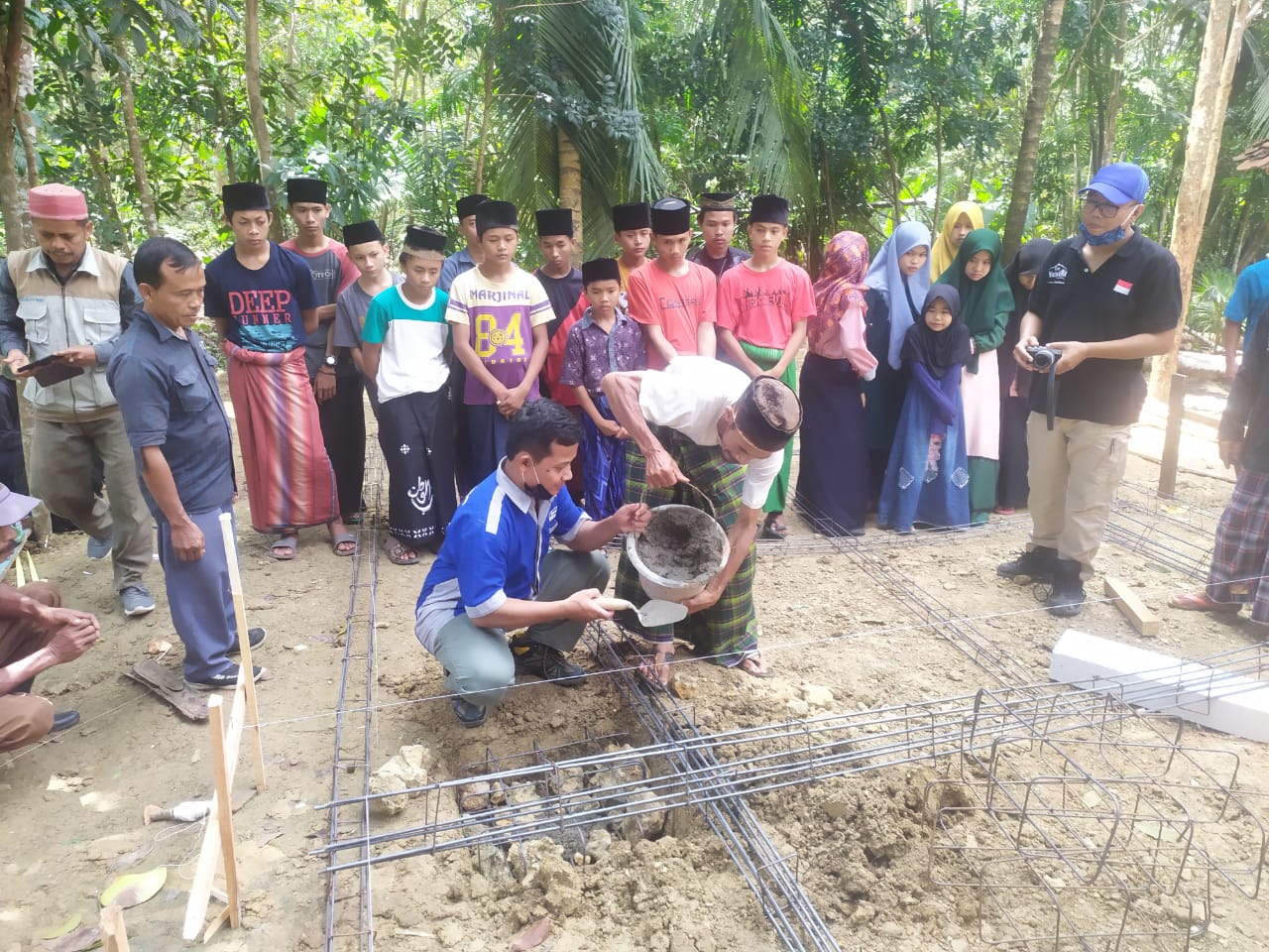 “ Dalam peletakan batu pertama di lakukan oleh Muslihudin dari Laznas Rumah Yatim yang di hadiri oleh kepala desa Cihanjuang Adhadi, tokoh masyarakat dan juga sesepuh Basatimu Cikeusik H.Roid Saputra “ Jum’at (16/10/2020)