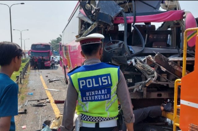 Kepala Induk PJR Serang Korlantas Polri Tol Tangerang Merak, AKP Wiratno mengatakan, insiden tersebut terjadi dikarenakan kendaraan kurang bisa menjaga jarak.