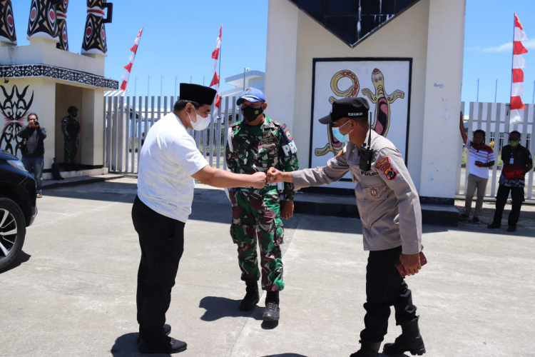 JAYAPURA – Kunjungan Wakil Gubernur Jawa Tengah Taj Yasin Maimoen ke Papua, dimanfaatkan dengan meninjau langsung Pos Lintas Batas Negara (PLBN) Skouw, Jayapura, Jumat (15/10/2021). Menaiki menara perbatasan Indonesia-Papua Nugini, wagub didampingi anggota TNI, terpukau oleh bentangan alam yang membuat semangat nasionalismenya makin menyala.