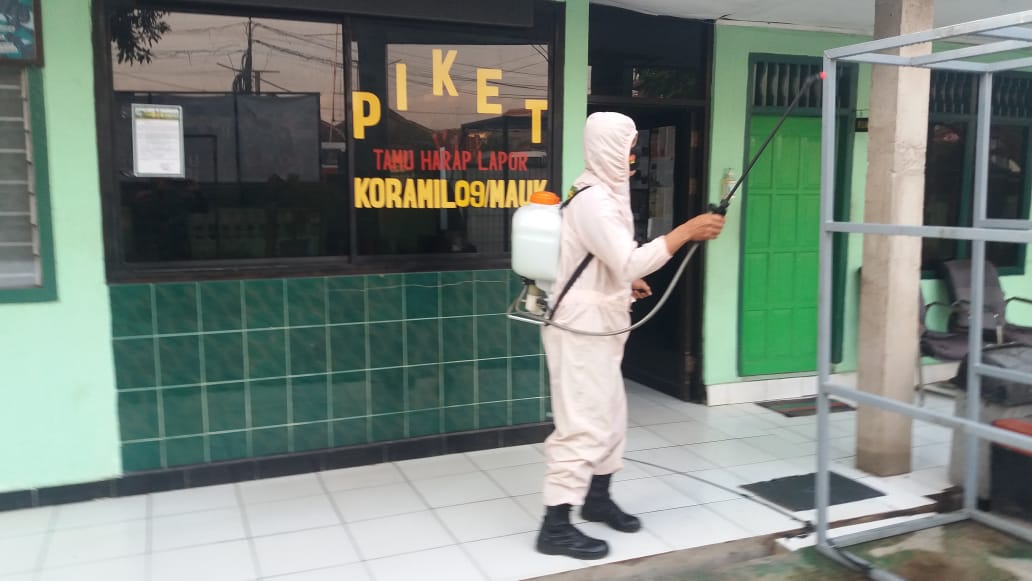 Lawan Corona, Pangkalan Koramil 09/Mauk Semprot Desinfektan