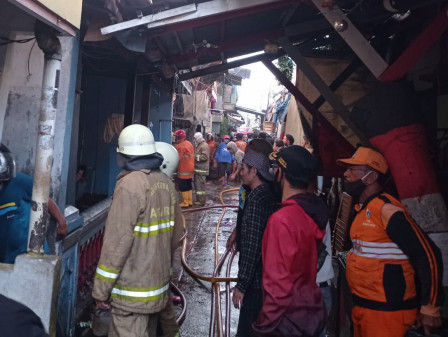 Petugas dari Suku Dinas Penanggulangan Kebakaran dan Penyelamatan (Sudin Gulkarmat) Jakarta Utara berhasil memadamkan kebakaran hebat yang terjadi di permukiman padat penduduk, Jalan Lorong L, RT 12/08, Kelurahan Koja, Kecamatan Koja.