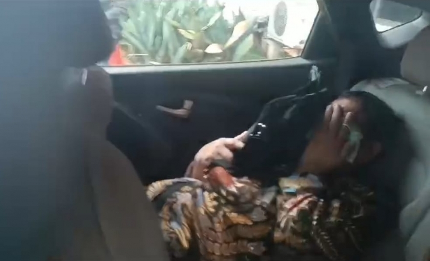 Di dalam mobil, Firli yang mengenakan pakaian batik itu terlihat duduk bersandar di sebelah ajudannya. Firli terlihat menyembunyikan wajah dan menutupinya dengan sebuah tas hitam serta selembar tisu.