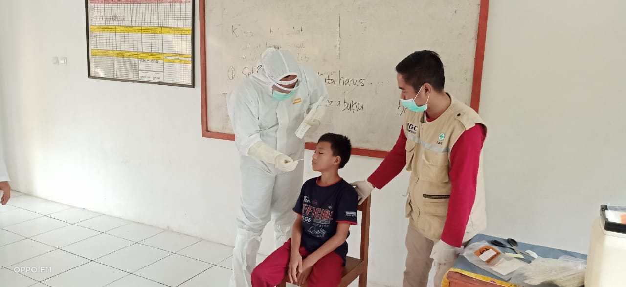 LEBAK, BANTEN.SIBERINDO.CO – Puluhan siswa siswi Sekolah Dasar (SD) Negeri 1 Sukanegara menggelar swab tes untuk mencegah penyebaran Covid-19 dengan tim gugus tugas Covid-19 Kecamatan Muncang, Kabupaten Lebak.