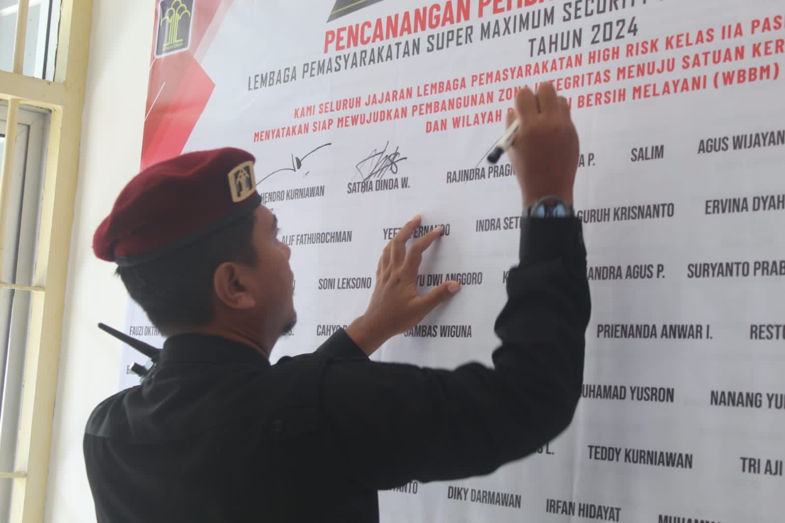 Lembaga Pemasyarakatan (Lapas) Kelas IIA Pasir Putih Nusakambangan Kemenkumham Jateng menggelar kegiatan apel penandatanganan komitmen bersama dan pakta integritas pembangunan Zona Integritas Menuju Wilayah Bebas dari Korupsi (WBK) Wilayah Birokrasi Bersih dan Melayani (WBBM) Tahun 2024.