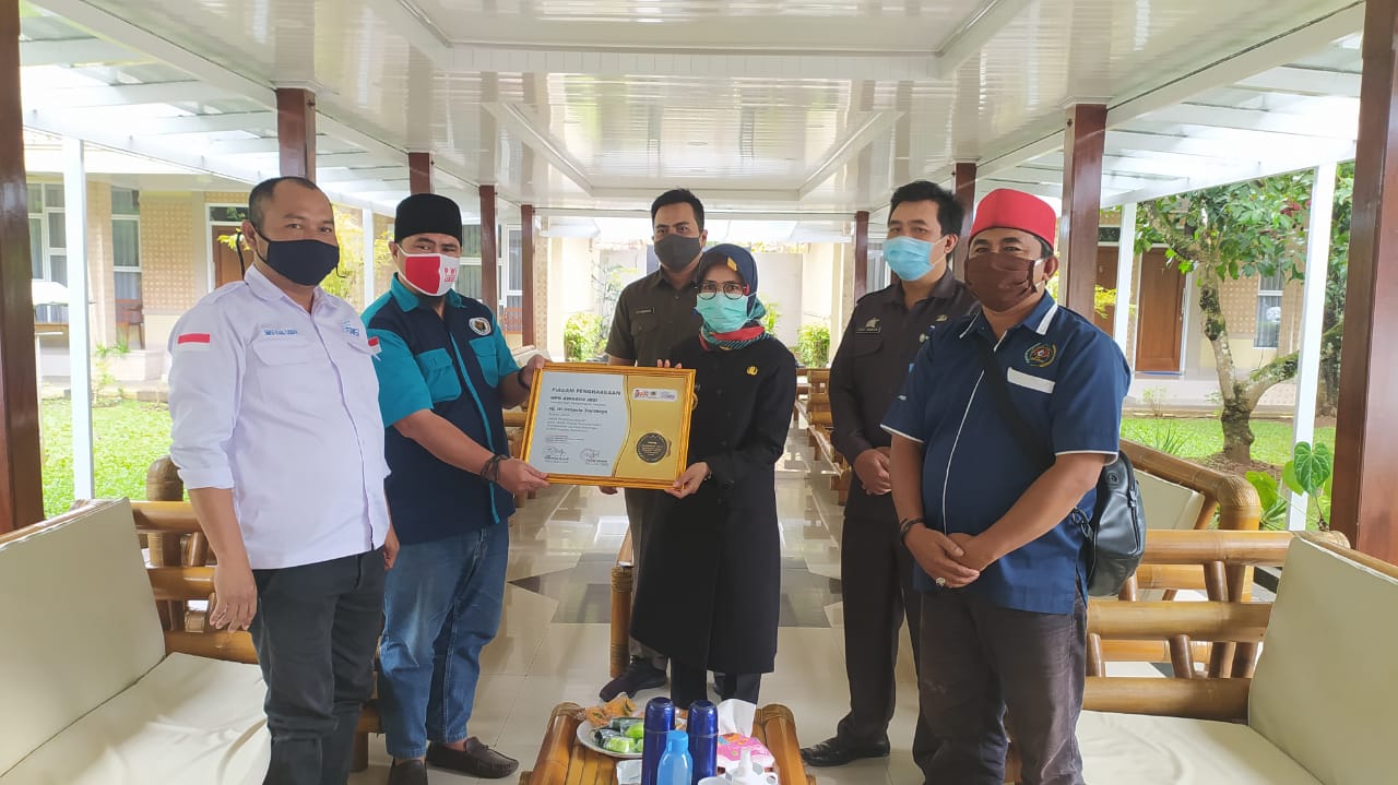 Ketua PWI Lebak, Fahdi Khalid didampingi sekretarisnya, RA Sudrajat dan Ketua Serikat Media Siber Indonesia (SMSI) Lebak, Achmad Syarif saat menyerahkan penghargaan itu memyampaikan agenda Hari Pers Nasional di tingkat pusat maupun daerah berlangsung sederhana dan tidak mengundang kerumunan orang.