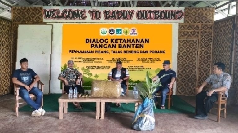 Yang menghadirkan Prof. Dr. Ir. Anton Apriyantono, M.Si., Menteri Pertanian di Era SBY, Dr. Fadlullah, Sekretaris Jenderal Forum Silaturahim Pondok Pesantren (FSPP) Provinsi Banten, Dr. Abdul Fatah, M.Pd., Ketua UPBK Universitas Sultan Ageng Tirtayasa (UNTIRTA), Muhammad Hasan Gaido, Dewan Pembina Insan Tani dan Nelayan Indonesia (INTANI) Provinsi Banten, dan Ardi Maulana, Pelaku Bisnis Talas Beneng di Aula Utama Kawasan Wisata Halal Baduy Outbound, Selasa (16/02) Serang, Banten.