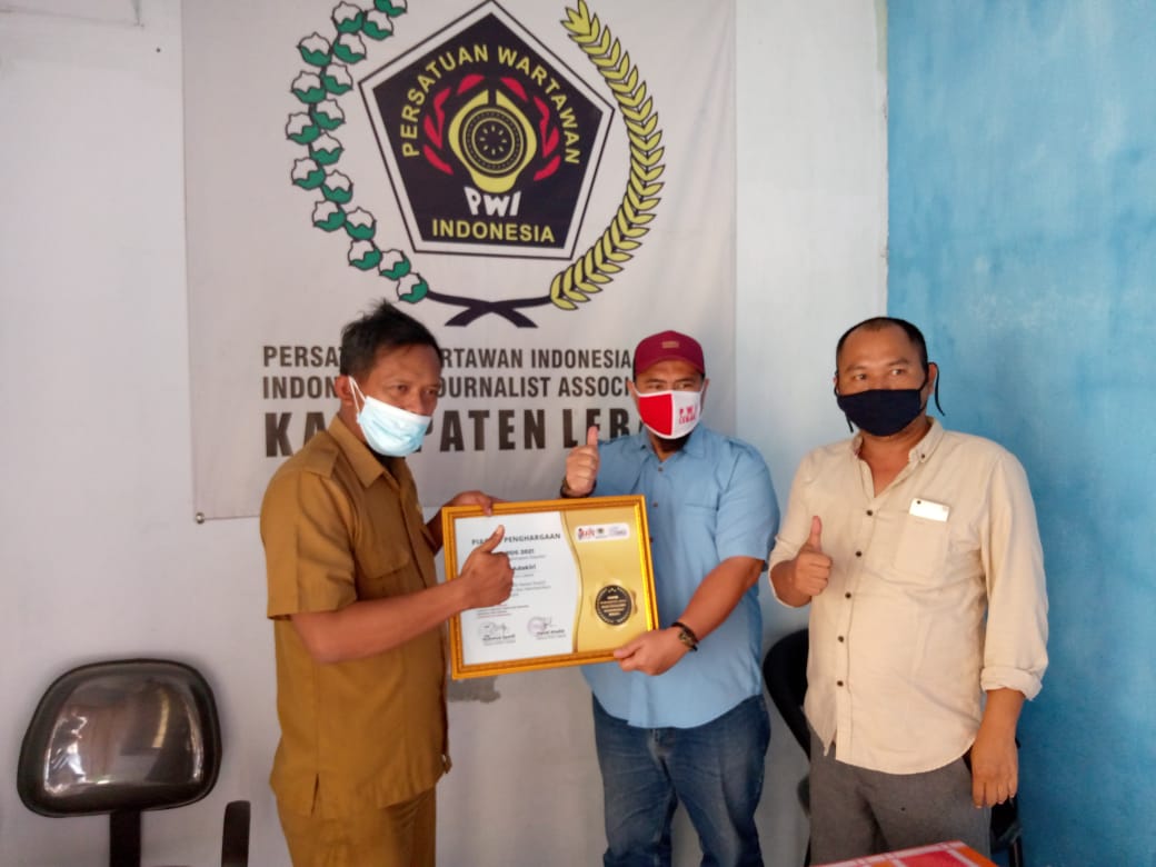 Penghargaan diserahkan oleh Ketua PWI Lebak, Fahdi Khalid dan Ketua SMSI Lebak, Ahmad Syarif didampingi Sekretaris PWI Lebak, RA Sudrajat, Selasa (16/2/2021) sore.
