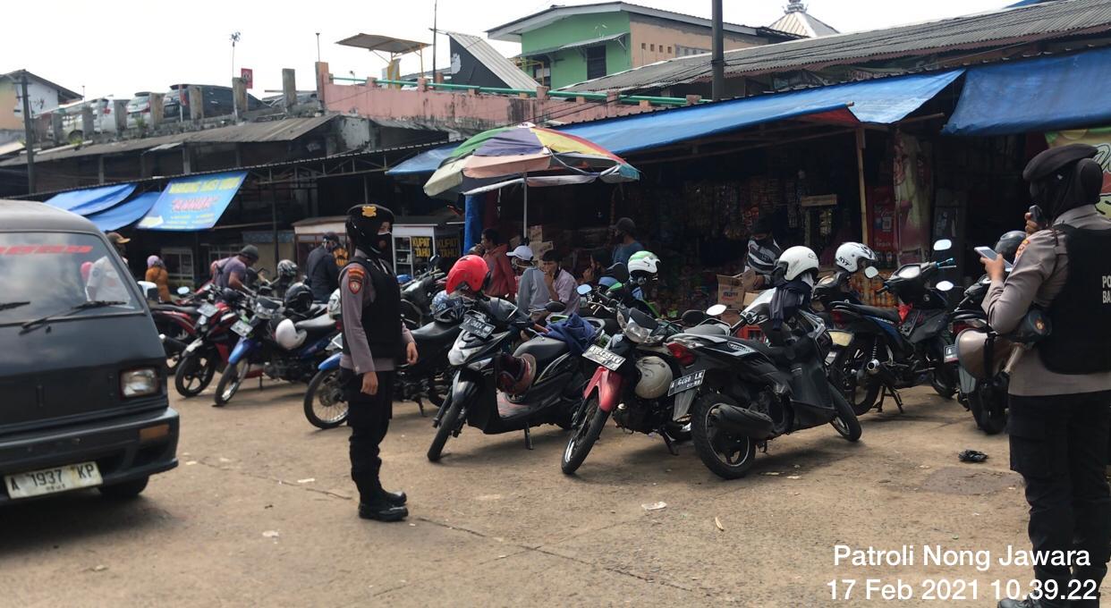PANDEGLANG – Dalam rangka mewujudkan Commander Wish Kapolda Banten yaitu Polisi yang empati, ngayomi, dan dekat dengan rakyat Banten serta meminimalisir penyebaran Covid-19, Nong Jawara Ditsamapta Polda Banten melaksanakan patroli dialogis yang dilakukan di Pasar Badak Pandeglang, Rabu (17/02/2021).