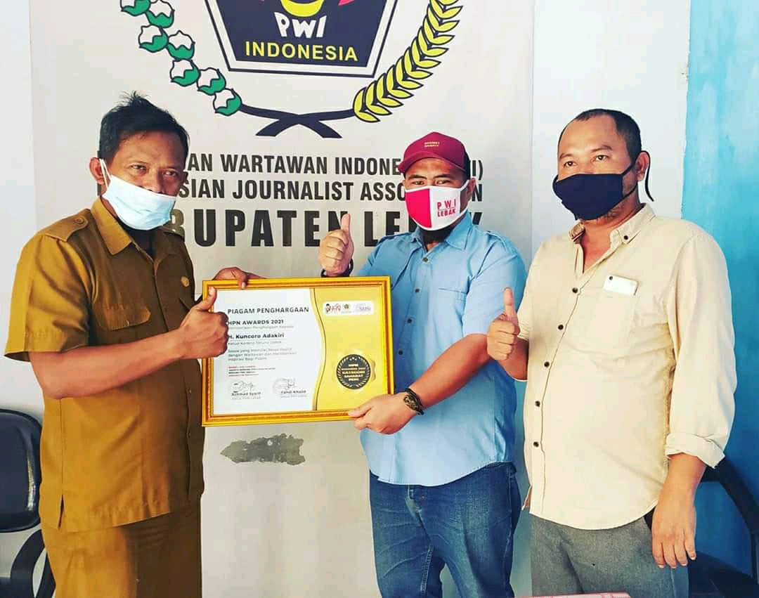 Penghargaan diserahkan oleh Ketua PWI Lebak, Fahdi Khalid dan Ketua SMSI Lebak, Ahmad Syarif didampingi Sekretaris PWI Lebak, RA Sudrajat, Selasa (16/02/2021) sore.