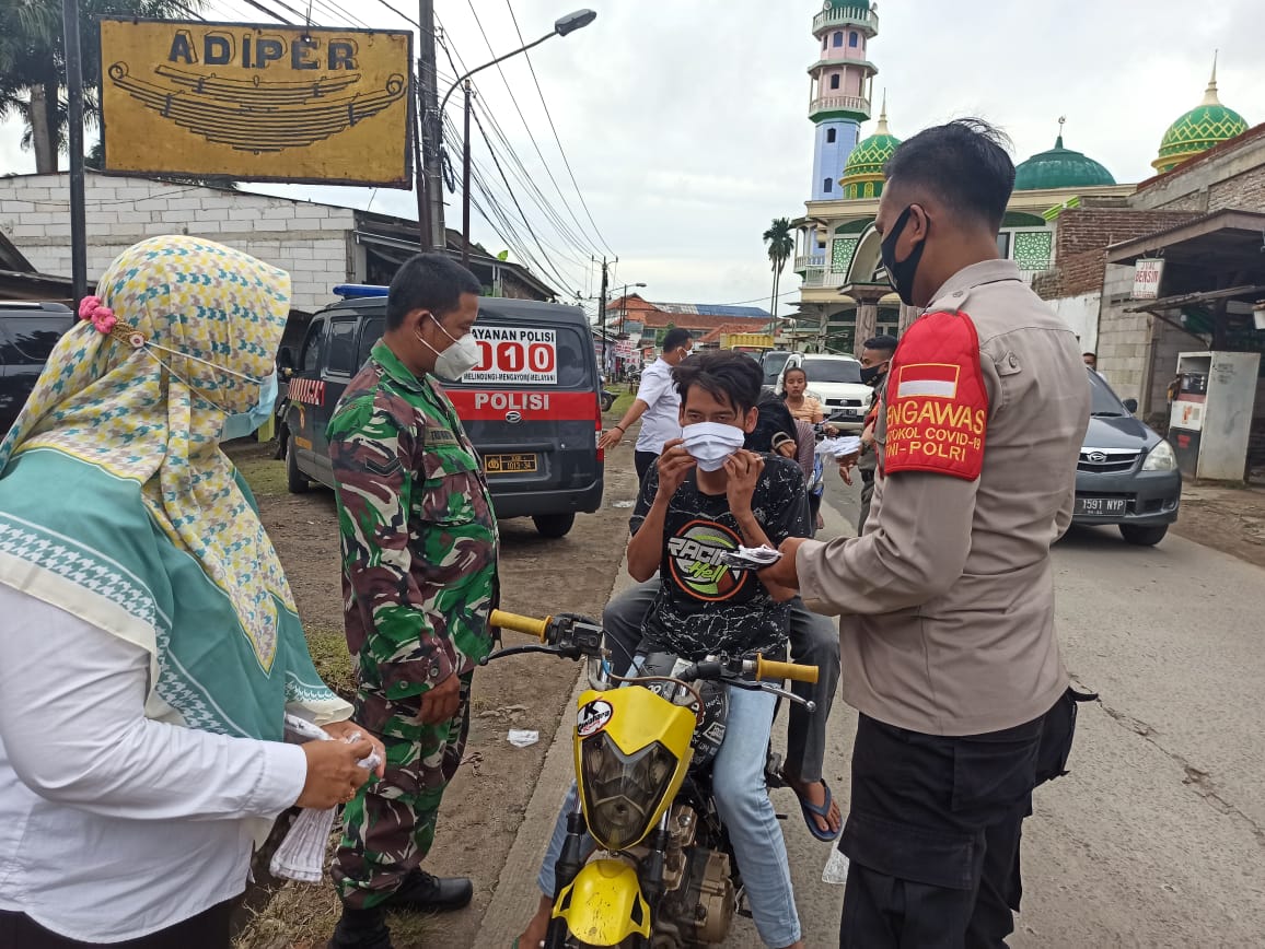 “Kegiatannya membagikan masker kemudian mengimbau masyarakat agar melaksanakan 5M yaitu menggunakan masker, menjaga jarak, mencuci tangan, menghindari kerumunan, dan mengurangi mobilitas atau mengurangi aktivitas di luar rumah,” terangnya.