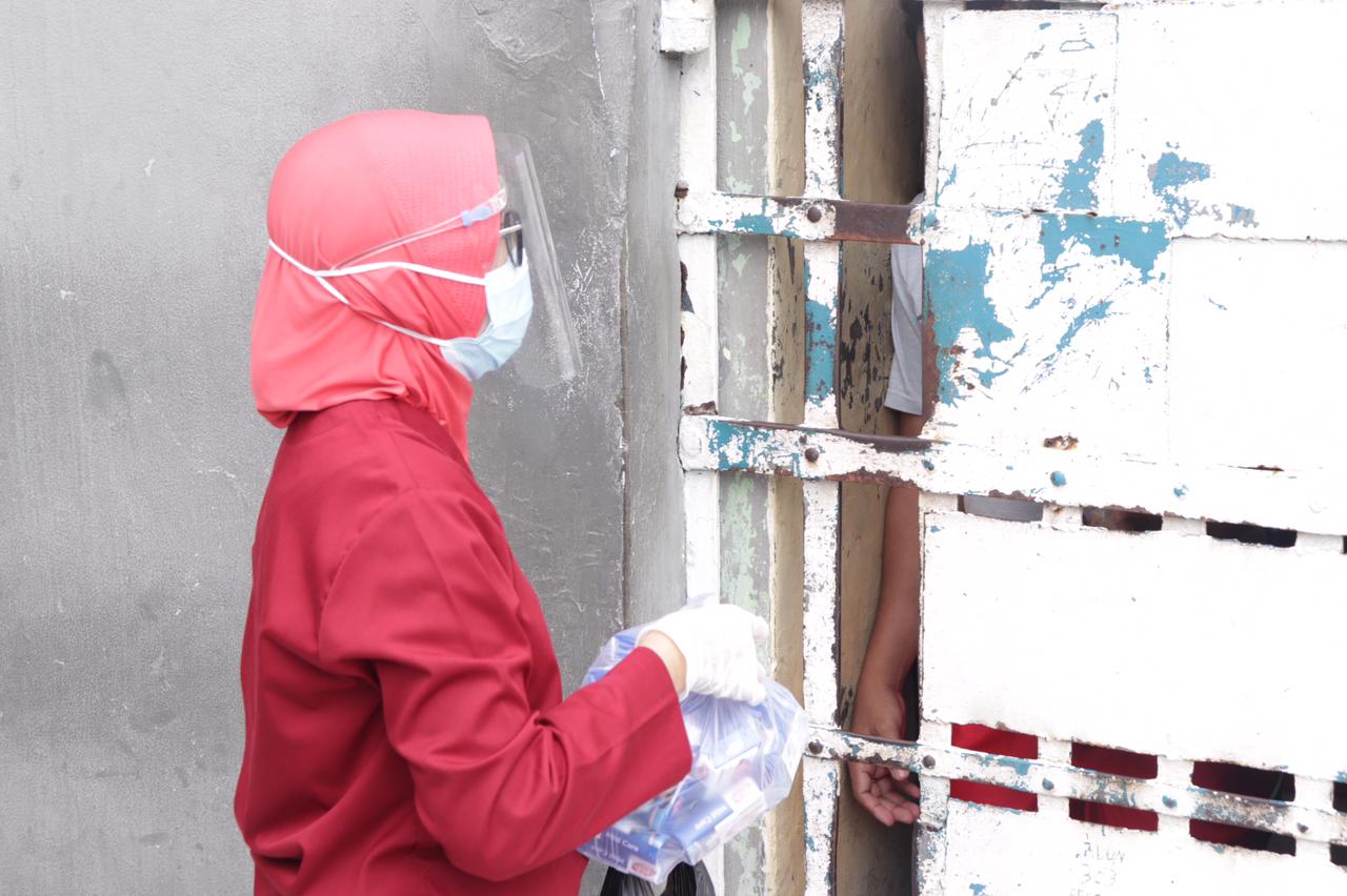 Bertempat di blok hunian Rutan Kelas IIB Serang, dokter dan perawat langsung membagikan sabun dan vitamin ke setiap kamar dengan di dampingi petugas pengamanan dan KA.KPR