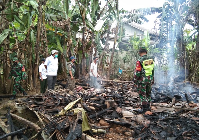 LEBAK – Diduga akibat dari api tungku di dapur, saat kejadian itu sekitar Pukul 06:00 WIB, Rabu (17/2/2021), pemilik rumah Armah (65) seorang Janda tua yang tinggal sendiri, sedang ke irigasi tempat Mandi Cuci Kakus (MCK) yang memang jauh dari rumahnya.