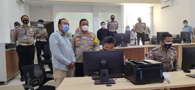 SERANG – Ombudsman RI Perwakilan Banten meninjau Electronic Traffic Law Enforcement (E-TLE) atau e-tilang di Mapolda Banten, Rabu (17/3/2021).