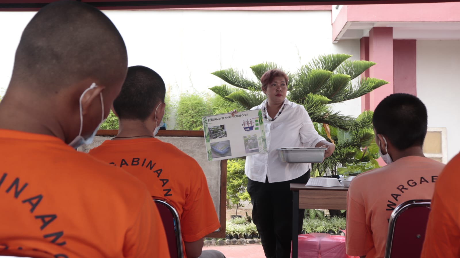 Anita, Praktisi Hidroponik dalam pelatihan tersebut memberikan motivasi kepada para peserta pelatihan untuk tidak putus asa memikirkan apa yang akan dilakukan setelah selesai menjalani masa hukuman.