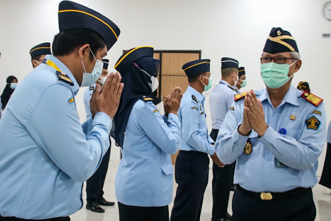 Kantor Wilayah Kementerian Hukum dan Hak Asasi Manusia Banten saling bermaaf-maafan yang dipimpin langsung oleh Kepala Kantor Wilayah Agus Toyib serta para Kepala Divisi dengan tetap menerapkan protokol kesehatan, Senin (17/05).