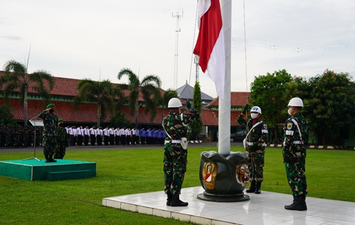 Inspektur Upacara Membacakan amanat tertulis Kasad Jenderal TNI Dudung Abdurachman saat ini kita masih suasana Idul Fitri, untuk itu saya selaku Kepala Staf Angkatan Darat dan pribadi, mengucapkan Selamat Hari Raya Idul Fitri 1443 H, mohon maaf lahir dan batin bagi segenap Prajurit dan PNS TNI AD yang beragama islam dan juga selamat hari Raya Waisak 2022 kepada yang merayakan