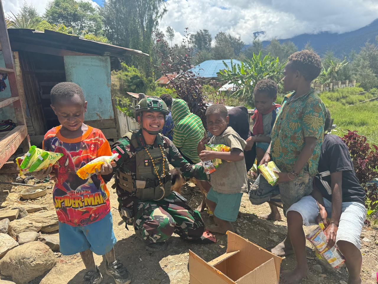 Salurkan Bantuan kepada Masyarakat Papua khususnya di sekitaran Sugapa Intan Jaya yang bertujuan untuk mempererat silaturahmi antara masyarakat dengan personel Satgas.