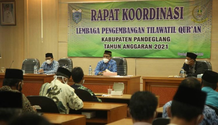 Sekretaris Umum Lembaga Pengembangan Tilawatil Qur’an (LPTQ) Kabupaten Pandeglang Hadizt Muntaha mengatakan pelaksanaan MTQ tingkat Kabupaten Pandeglang tahun 2021 kami pusatkan di Mutiara Carita, meskipun ditetapkanya Kecamatan Carita menjadi pusat penyelenggaraan MTQ bukan berarti Kecamatan Carita bersetatus tuan rumah, karena dalam hal ini pelaksanaan MTQ tidak ada penetapan status tuan rumah, “kata Hadizt Muntaha saat menggelar Rapat Koordinasi Lembaga Pengembangan Tilawatil Qur’an bertempat di Oproom Sekretariat daerah, Kamis (17/6/2021).“ katanya.