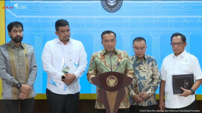 Hal itu disampaikan dalam konferensi pers Mensesneg Prasetyo Hadi di kantor Presiden, Istana Kepresidenan, Jakarta, Selasa (17/6/2025). Turut hadir Wakil Ketua DPR Sufmi Dasco Ahmad, Mendagri Tito Karnavian, Gubernur Sumut Bobby Nasution, dan Gubernur Aceh Muzakir Manaf atau Mualem.