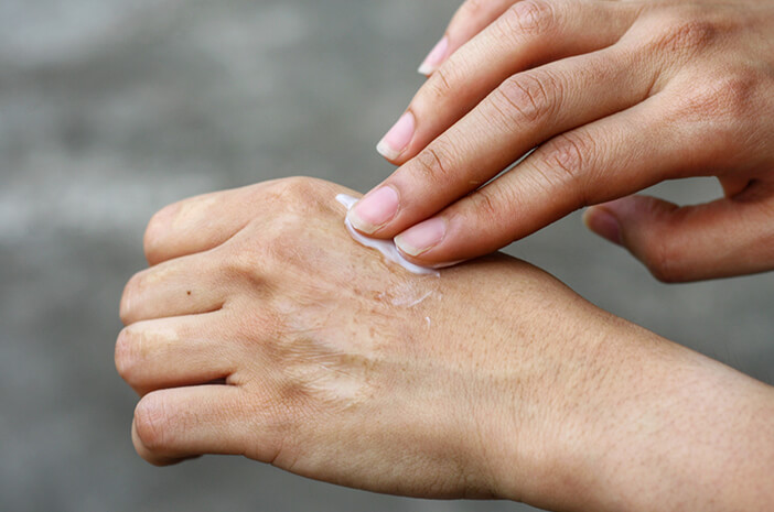 Oleskan salep atau krim khusus luka bakar yang mengandung antiseptik atau antibiotik ringan, agar kulit tetap lembap dan terhindar dari infeksi. Sebelum mengoleskannya pada luka, pastikan tangan Anda bersih dan kering.