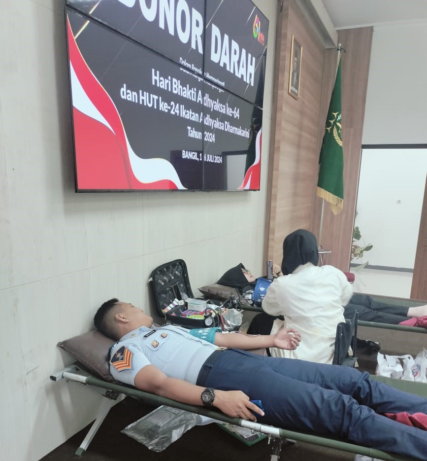 PASURUAN –Dalam rangka memperingati Hari Bhakti Adhyaksa ke-64 dan HUT ke-24 Ikatan Adhyaksa Dharmakarini tahun 2024, Rutan Bangil Kanwil Kemenkumham Jatim mengirim Empat taruna Poltekip yang melaksanakan PKL dan KKN untuk ikut serta dalam kegiatan donor darah yang diselenggarakan di Kejaksaan Kabupaten Pasuruan. Partisipasi mereka dalam kegiatan kemanusiaan ini menunjukkan kepedulian dan tanggung jawab sosial yang tinggi, sekaligus menjalin sinergi yang baik antara berbagai instansi pemerintah, Kemarin Selasa (16/07/2024).