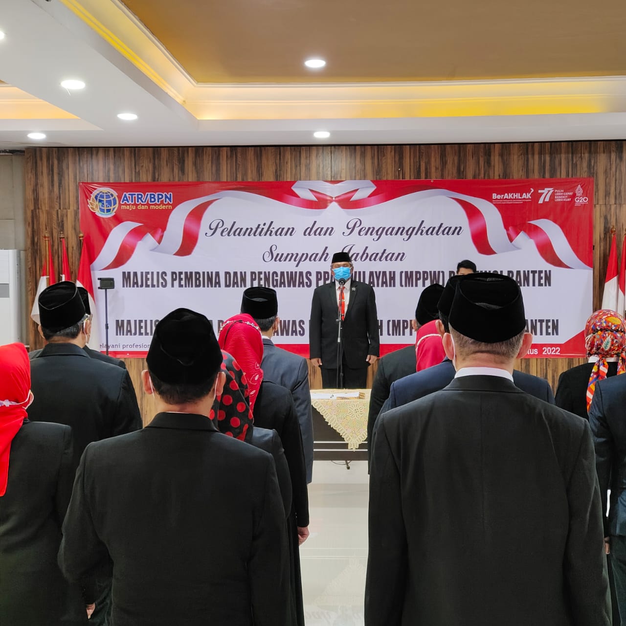 Untuk efisiensi dan efektivitas, Pelantikan dilaksanakan secara _hybrid_ yakni peserta pelantikan MPPW Provinsi Banten dan MPPD Kabupaten Serang, Kota Serang dan Kota Cilegon dilantik dan diambil sumpahnya secara tatap muka bertempat di Aula Baduy Kantor Wilayah BPN Provinsi Banten dan selebihnya mengikuti melalui daring dari Kantor Pertanahan Kabupaten Pandeglang, Kabupaten Lebak, Kabupaten Tangerang, Kota Tangerang dan Kota Tangerang Selatan.