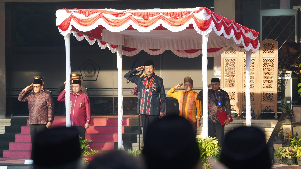 Menteri Agama Nasaruddin Umar memimpin upacara peringatan Hari Ulang Tahun ke-80 Kemerdekaan Republik Indonesia di halaman kantor Kementerian Agama, Jakarta, Minggu (17/8/2025).