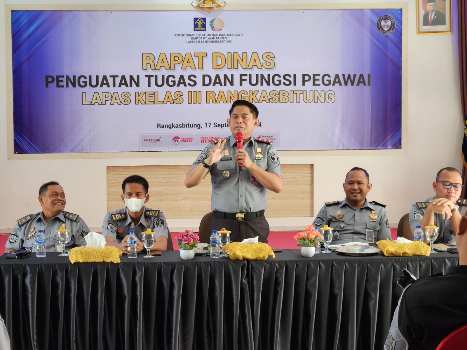 Pada arahan nya seluruh pejabat struktual sepakat untuk meningkatkan Tugas dan Fungsi khususnya di bidan pengamanan dan pembinaan serta menyiapkan Lapas Rangkasbitung sebagai pionir program Lapas Bersinar (bersih dari Narkoba) menuju Wilayah Birokrasi Bersih dan Melayani (WBBM).
