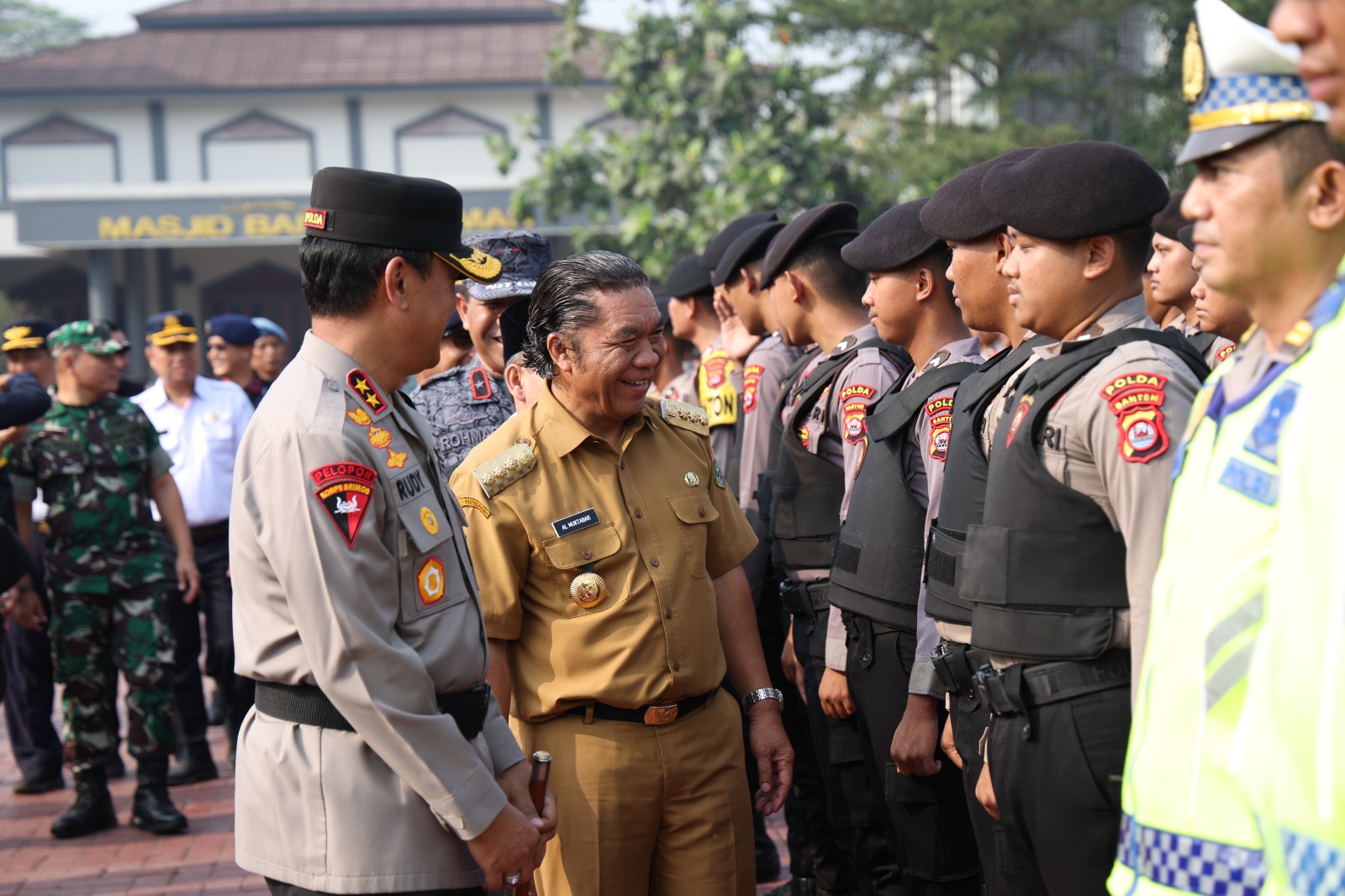 Pada kesempatan itu, Al Muktabar yang didampingi Kapolda Banten Irjen Pol Rudy Heriyanto mengecek langsung kesiapan seluruh personel gabungan yang terdiri dari Polri, TNI Angkatan Darat (AD), TNI Angkatan Laut (AL), TNI Angkatan Udara (AU), Basarnas, BPBD dan Satpol PP.