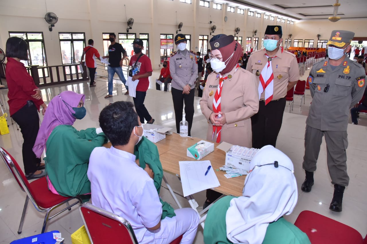 SUKOHARJO – Bupati Sukoharjo Etik Suryani terus mendorong masyarakat agar mengikuti vaksinasi. Hal itu disampaikan saat melakukan pantauan pelaksanaan vaksinasi di Graha PGRI, Selasa (16/11/2021).
