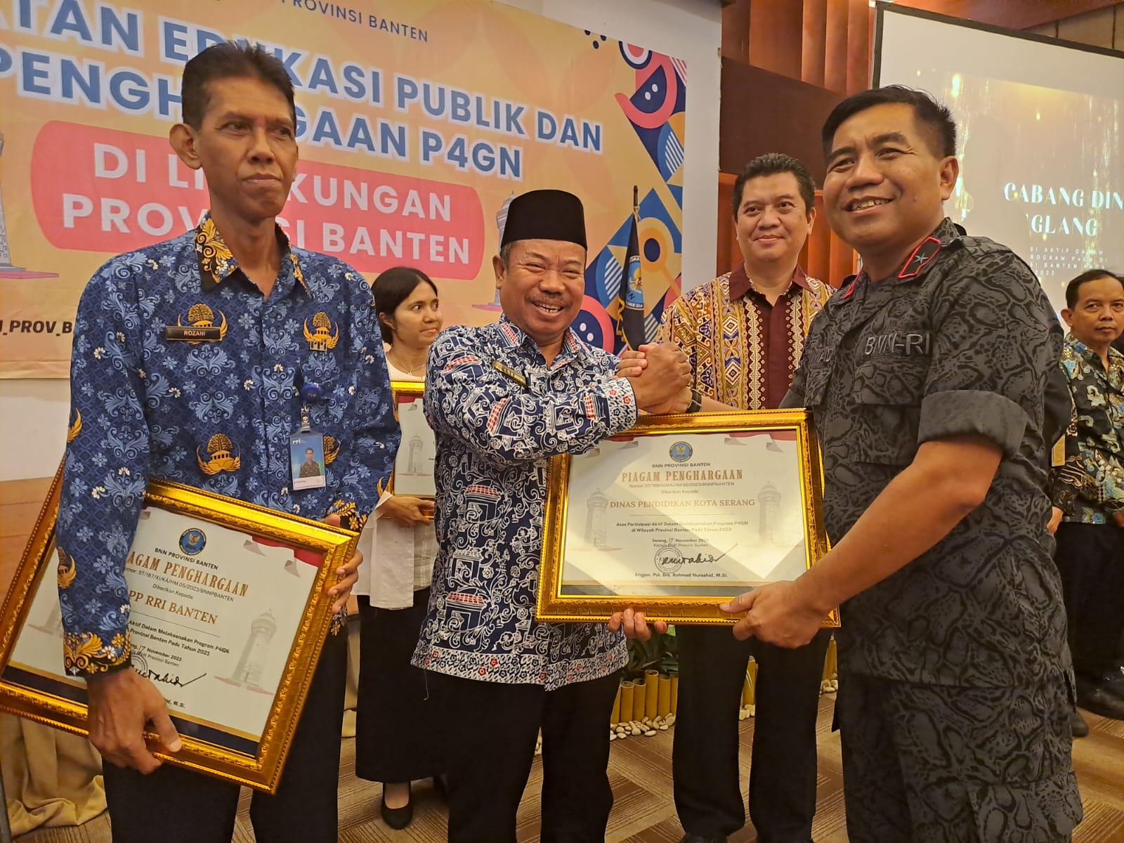 Sementara itu, Kepala Dindikbud Kota Serang, Tb Suherman mengatakan, penghargaan yang diberikan oleh BNNP Banten merupakan bukti konkrit untuk menggalakkan program P4GN di lingkungan Dindikbud Kota Serang.