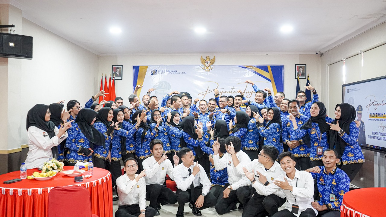 Ternate – Kepala Kantor Wilayah (Kanwil) Kementerian Hukum (Kemenkum) Maluku Utara (Malut), Budi Argap Situngkir mengapresiasi sepak terjang Kepala Divisi Pelayanan Hukum, Chusni Thamrin yang mengemban tugas di Malut kurang lebih 11 bulan. Argap menilai, Chusni yang kini mengemban tugas strategis sebagai Direktur Teknologi Informasi (TI) Direktorat Jenderal Kekayaan Intelektual (DJKI), merupakan sosok yang mampu mendorong capaian kinerja pelaksanaan tugas, dan pelayanan publik berdampak positif bagi masyarakat.