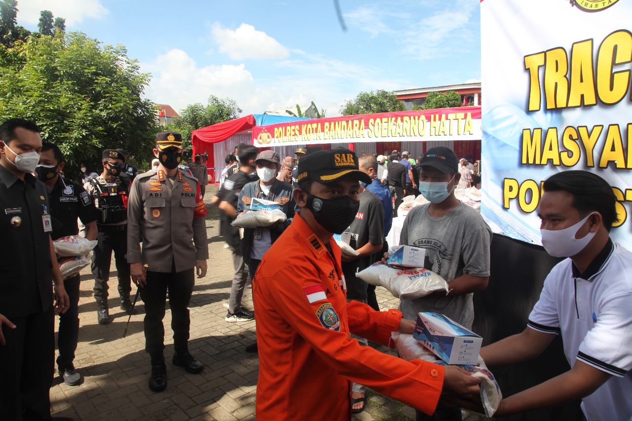 Disela sela acara Kapolresta bandara Soekarno-Hatta Kombespol Adi Ferdian Saputra S.IK MH  menyampaikan bahwa kegiatan 3T ( Testing, Tracing dan Treatment) serta Bakti Sosial (pemberian Sembako berupa Beras) dilaksanakan serentak oleh personel Polresta Bandara Soetta untuk dapat menekan angka masyarakat yang terkonfirmasi positif Covid-19.