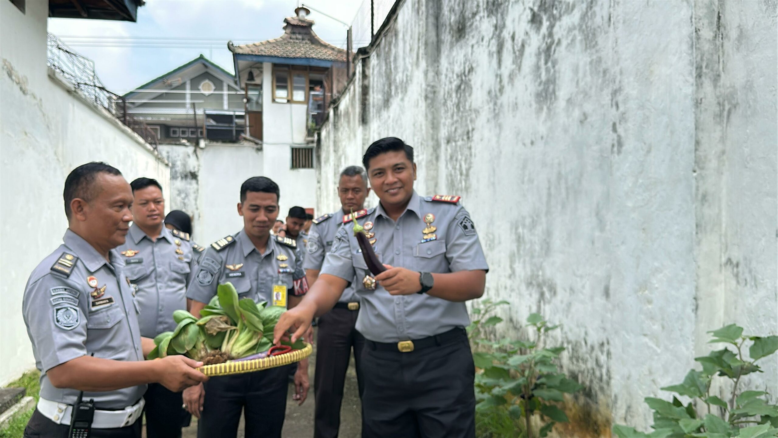 Pengecekan dilanjutkan ke area branggang sekaligus mengecek personil yang bertugas agar selalu standby dan waspada. Pada kesempatan kali ini, Karutan juga melakukan panen sayuran yang terdapat di area branggang diantaranya sawi sendok, tomat serta terong. Besar harapan program ketahanan pangan yang telah berjalan di Rutan Surakarta sesuai arahan Menteri Imigrasi dan Pemasyarakatan dapat terus berkelanjutan.