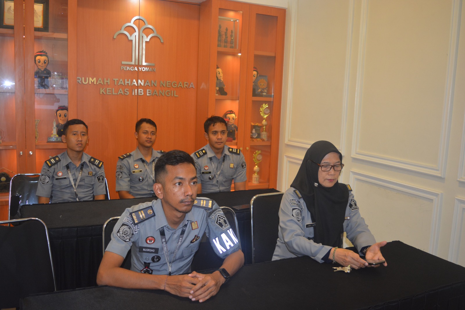 Pasuruan – Rumah Tahanan Negara (Rutan) Kelas IIB Bangil mengikuti arahan Direktur Jenderal Pemasyarakatan (Dirjenpas), Mashudi, melalui Zoom Meeting yang digelar secara nasional. Kegiatan ini bertujuan untuk mendorong komitmen jajaran Pemasyarakatan dalam percepatan program akselerasi Menimpas serta menegaskan upaya pemberantasan peredaran handphone, pungutan liar, dan Narkoba (Halinar). Zoom dilaksanakan di ruang sekretariat Rutan Bangil dengan diikuti oleh pejabat struktural dan pegawai setempat, Senin (17/02).