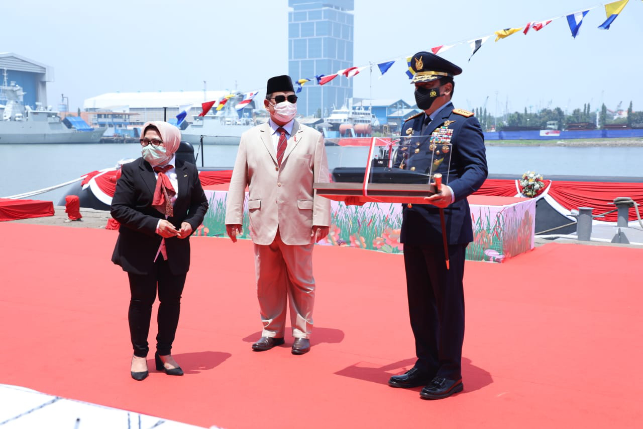 SURABAYA – Kapal Selam ke-3 KRI Alugoro-405, yang dibuat PT PAL in Daewoo Shipbuilding and Marine Engineering (DSME) Korea Selatan menjadi kebanggaan bagi Menteri Pertahanan (Menhan) Prabowo Subianto.