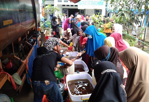 Kegiatan penyaluran minyak goreng curah tersebut terpantau dibantu pengamanan dari Linmas dan pihak TNI – Polri setempat. *(DENA F.P)