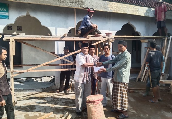 ” Bantuan tersebut di terima langsung oleh ketua Dewan Kemakmuran Mesjid ( DKM) Bapak Jujum Efendi dan ketua RW setempat Ayo, bantuan tersebut berupa 85 Zak Semen serta Dana pemeliharaan.