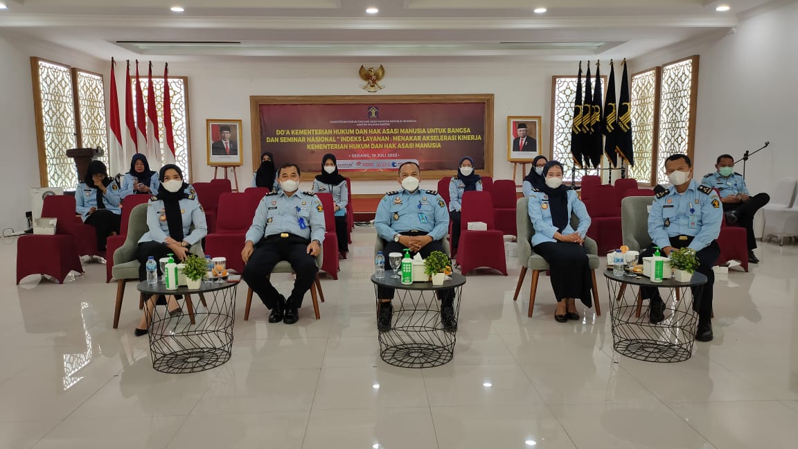 Dilakukan secara hybrid, luring di Graha Pengayoman dan virtual melalui aplikasi zoom meeting oleh satuan kerja Kemenkumham di Seluruh Indonesia, turut mengikuti dari Aula Lantai III Kantor Wilayah Kemenkumham Banten, Pimpinan Tinggi Pratama Kantor Wilayah, pejabat struktural serta pengawai Kemenkumham Banten.